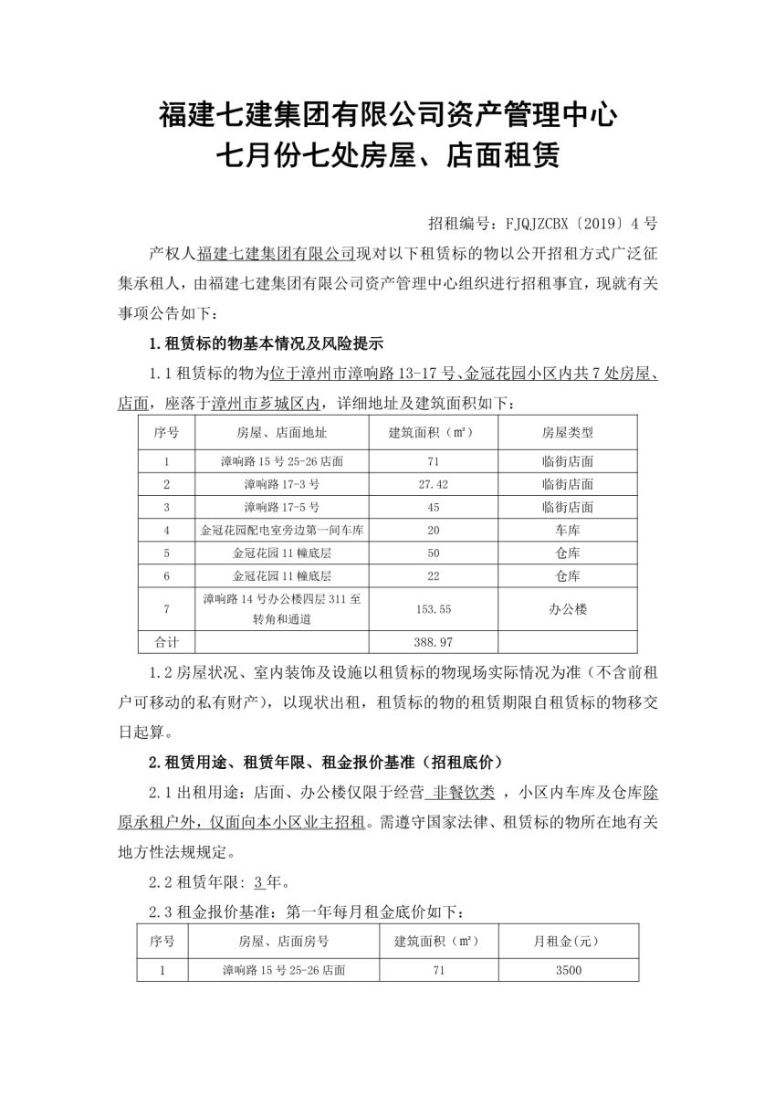 | 名称 | 漳州市漳响路13-17号、金冠花园小区内共7处房屋、店面招租公示 |